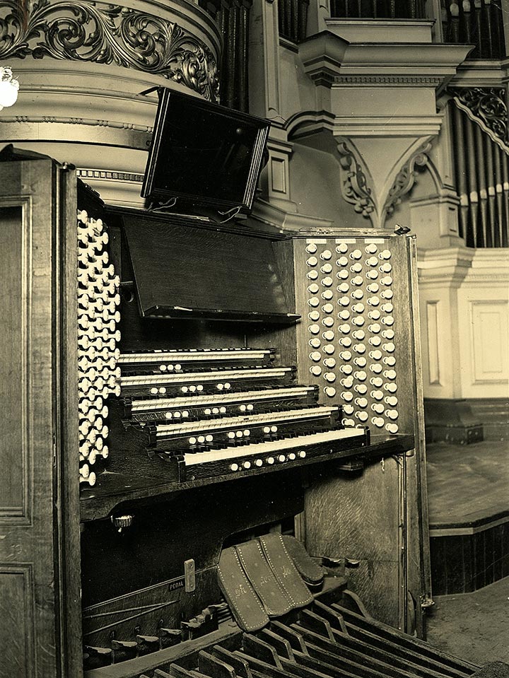 When Lemare arrived in Sydney, the organ was in “deplorable” condition. He was appointed to oversee the repair work and chose the firm of W.E. Richardson & Sons. During the next two weeks thousands of pipes were tuned and six assistants repaired the five manuals. Lemare himself supervised the tuning of the full length 64’ reed.
